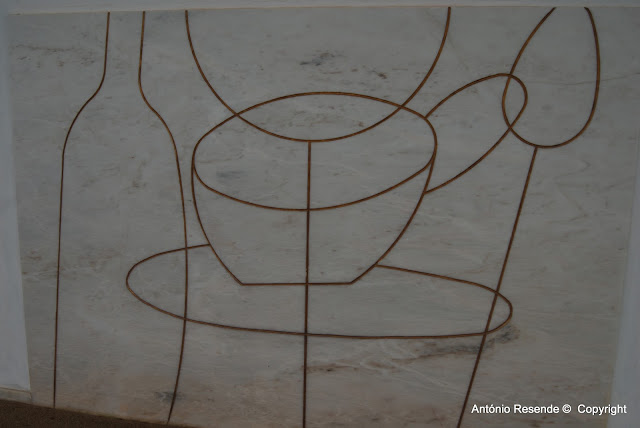 Siza reservou o último piso para a vertente mais social e pública do vinho. Aí foi criada a sala de provas que se abre para um terraço panorâmico com relvado e um espelho de água central encabeçado por um painel esculpido em mármore, desenhado também pelo arquitecto, onde as silhuetas de uma chávena de café, de um copo de vinho e de uma garrafa se sobrepõem.