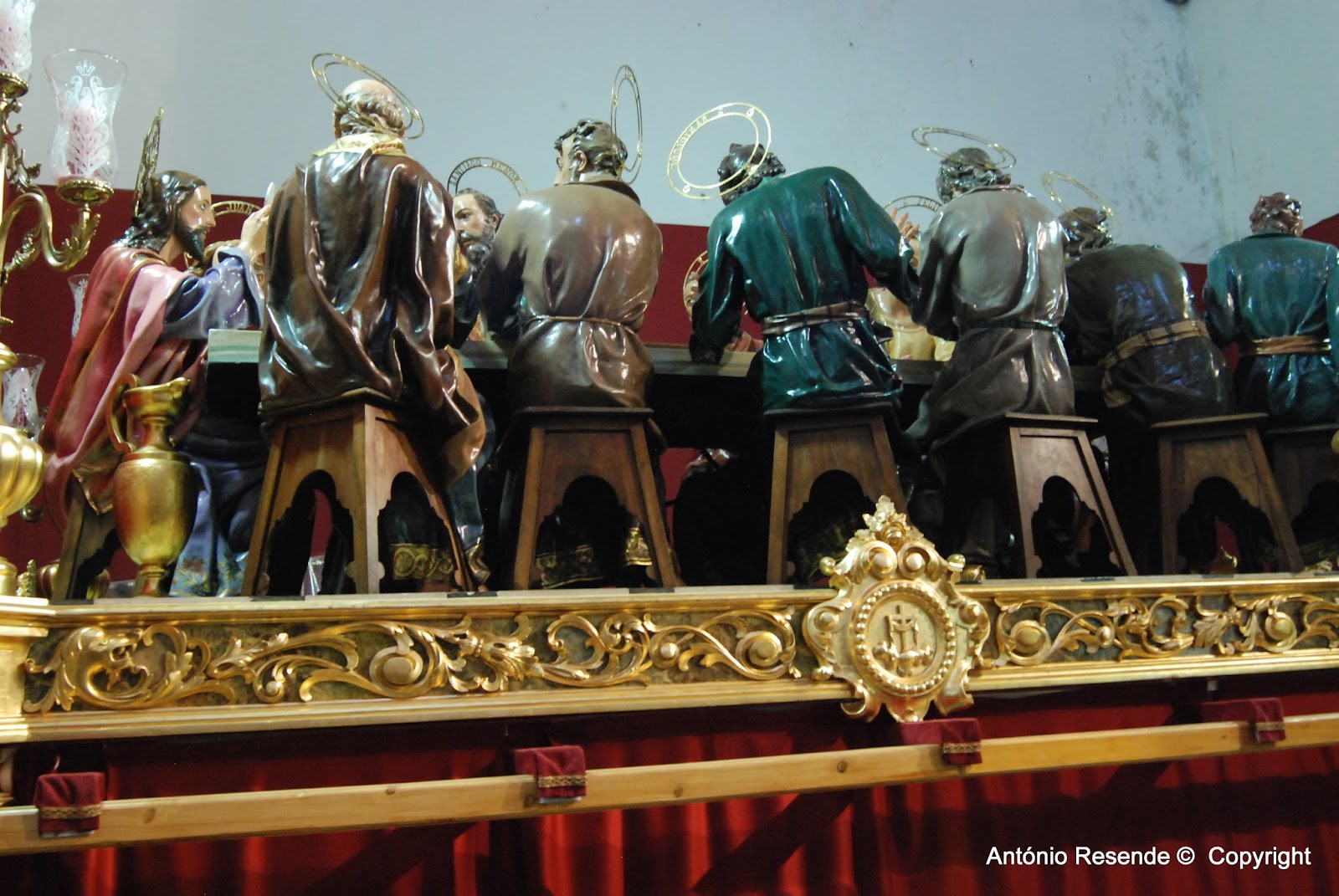 Ficámos impressionados pelo tamanho dos andores, segundo nos informaram, alguns são suportados por mais de 40 homens ,e têm de estar outros tantos prontos para os irem subsistindo durante o percurso da procissão.