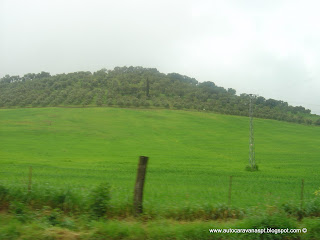 A estrada inicial, um tanto ou quanto sinuosa por entre montículos de de verde claro, regados pela fraca chuva matinal.