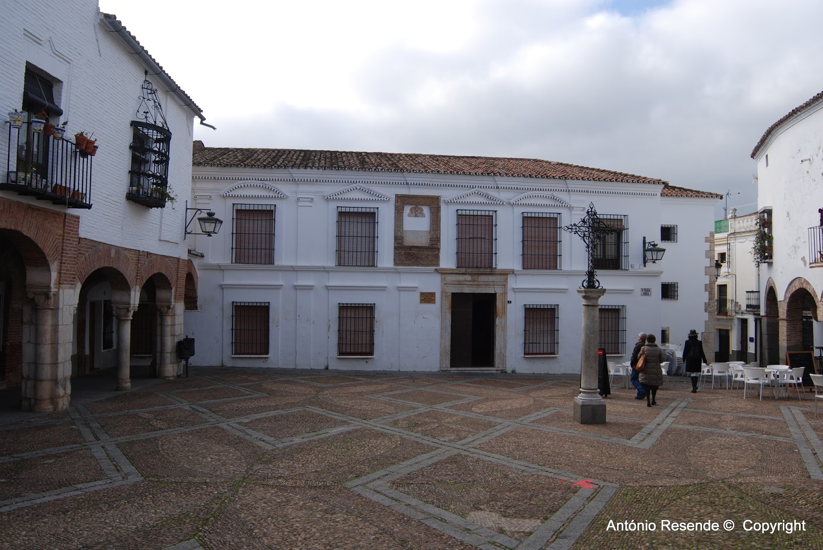 | PRAÇA CHICA - Centro Comercial durante séculos onde se localizavam estabelecimentos comerciais, pousadas e pensões, oferece recantos nostálgicos como o ''Arquillo del Pan'', onde se encontra uma capela barroca com a imagem da popular ''Esperancita'', ou esculpida numa coluna da Praça uma antiga vara de medir castelhana de 83cm, conhecida como a Vara de Zafra. O edifício ao fundo foi Câmara Municipal até 1881, de estilo neoclássico e construido na metade do séc. XVIII, atual sede do Palácio da Justiça. |