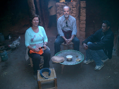 Alimentação - A comida típica mais frequente, é a ''tajine''. Com uma campânula de barro (base e testo cónico) onde se cozinha a lume brando uma série de hortaliças, as batatas, as ''zanahorias'' os guisados e os ''calabacines''. Cada tajine é diferente, podendo incluir carne de carneiro, novilho ou cabra, incluindo por vezes na costa o pescado e o sempre presente ''cuscus''... Não tivemos problemas de digestão, apesar de havermos frequentado um ou outro restaurante...Um bom método para nos alimentarmos na viagem, poderá ser a inclusão de pequena paragem nas pequenas localidades, junto aos establecimentos onde se cozinham as ''tagines'' sobre o fogo, e consumi-la na AC, acompanhada do vinho da própria adega, pelo que é recomendável ir bem aprovisionados. Há muito poucos locais onde adquirir bebidas alcoólicas (vinho ou cerveja). Uma tagine para 2 pessoas, ronda os 60,00 DH (cerca de € 6,00).
