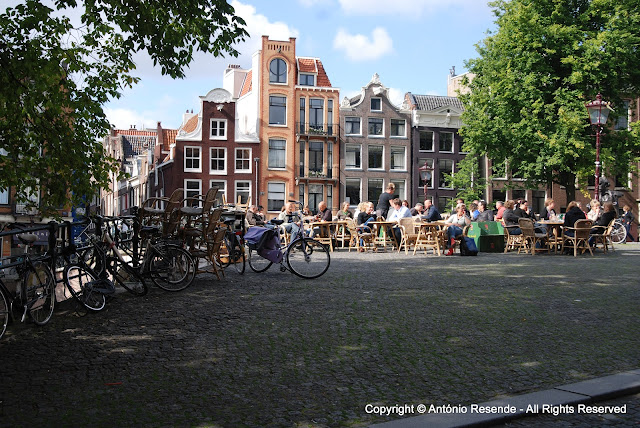 na ponte que atravessa o ''Singel'', ergue-se a estátua do grande escritor Multatuli. Na esquina à esquerda do monumento, a magnífica esplanada do melhor café e tarte de maçã (segundo dizem), mas repleto, rumei a outras paragens