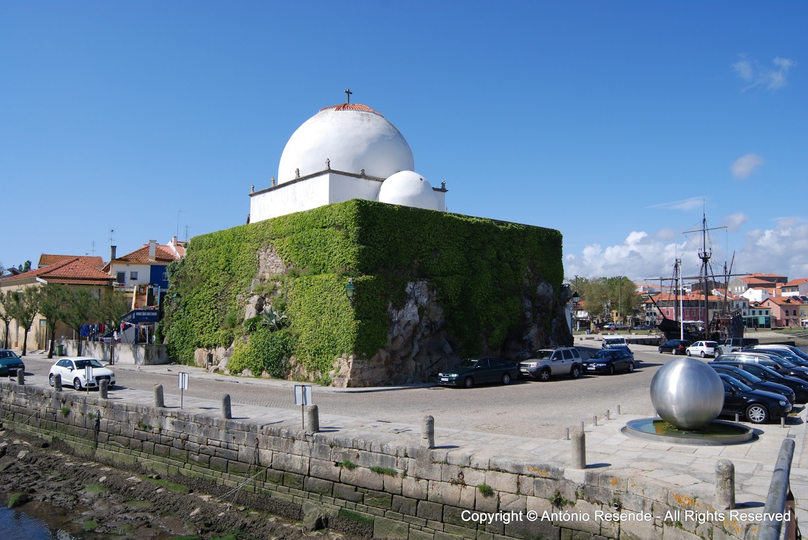 A nau quinhentista no local onde existiam outrora os estaleiros navais, a 'marina' e o Convento de Sta Clara