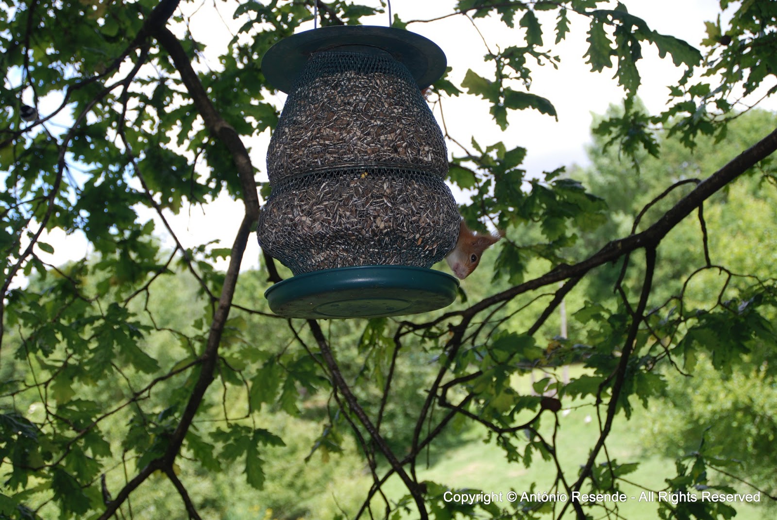 a dois metros do observatório, um esquilo roía o petisco facultado