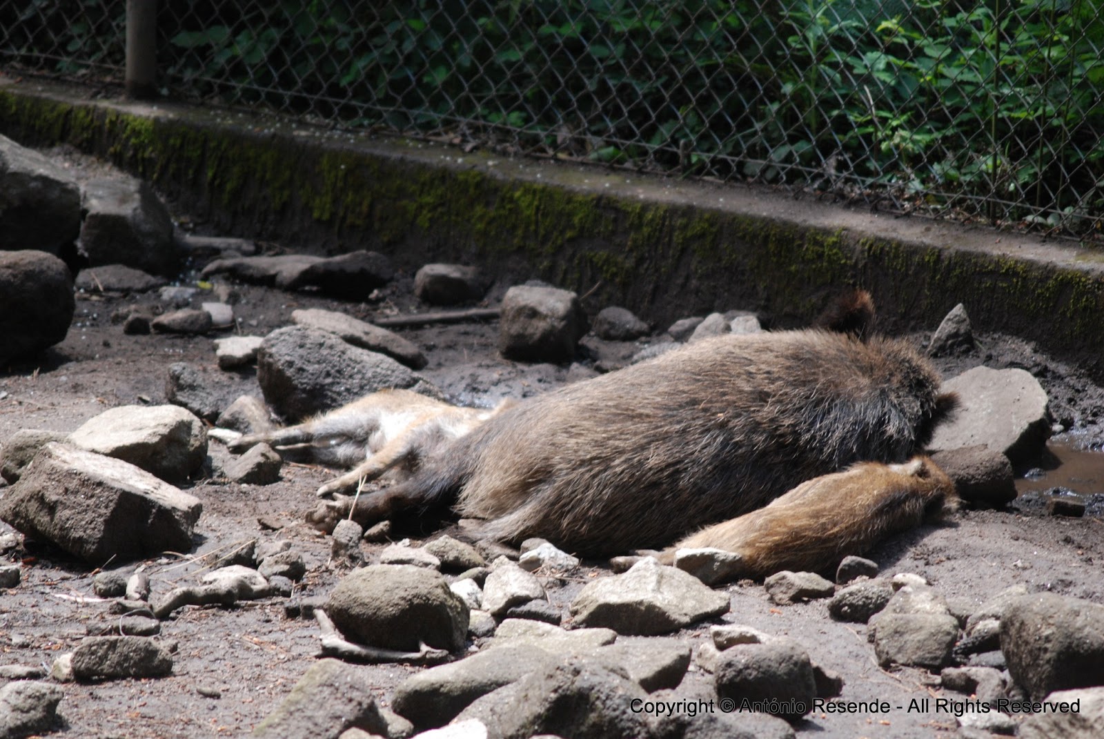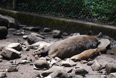mãe javali fazendo a 'sesta' com as duas crias