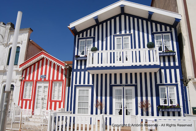O casario 'zebrado' de azul, verde e encarnado lá nos foi reavivando a memória duma localidade que nesse ponto de vista é peculiar no País.