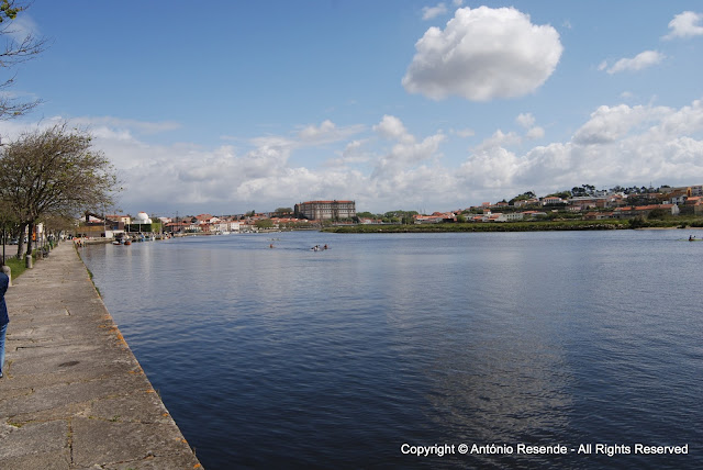Manhã cedo inúmeras canoas cortavam as calmas águas do Ave...