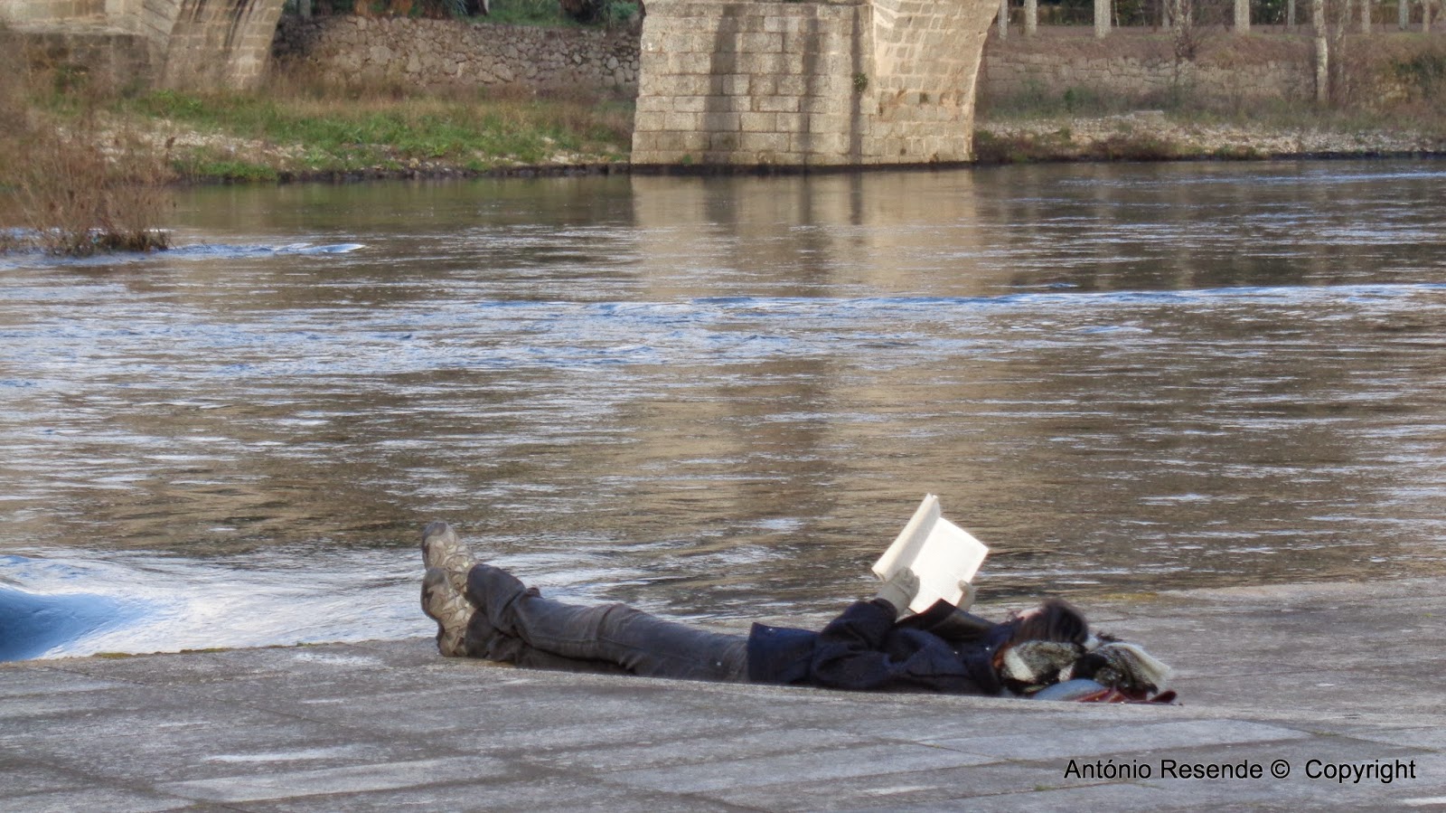 | Uma jovem bom bom gosto - leitura ao som estridente das águas revoltas do Rio |