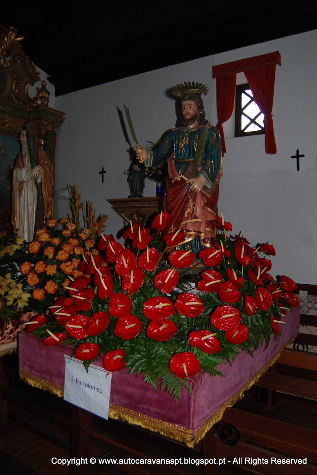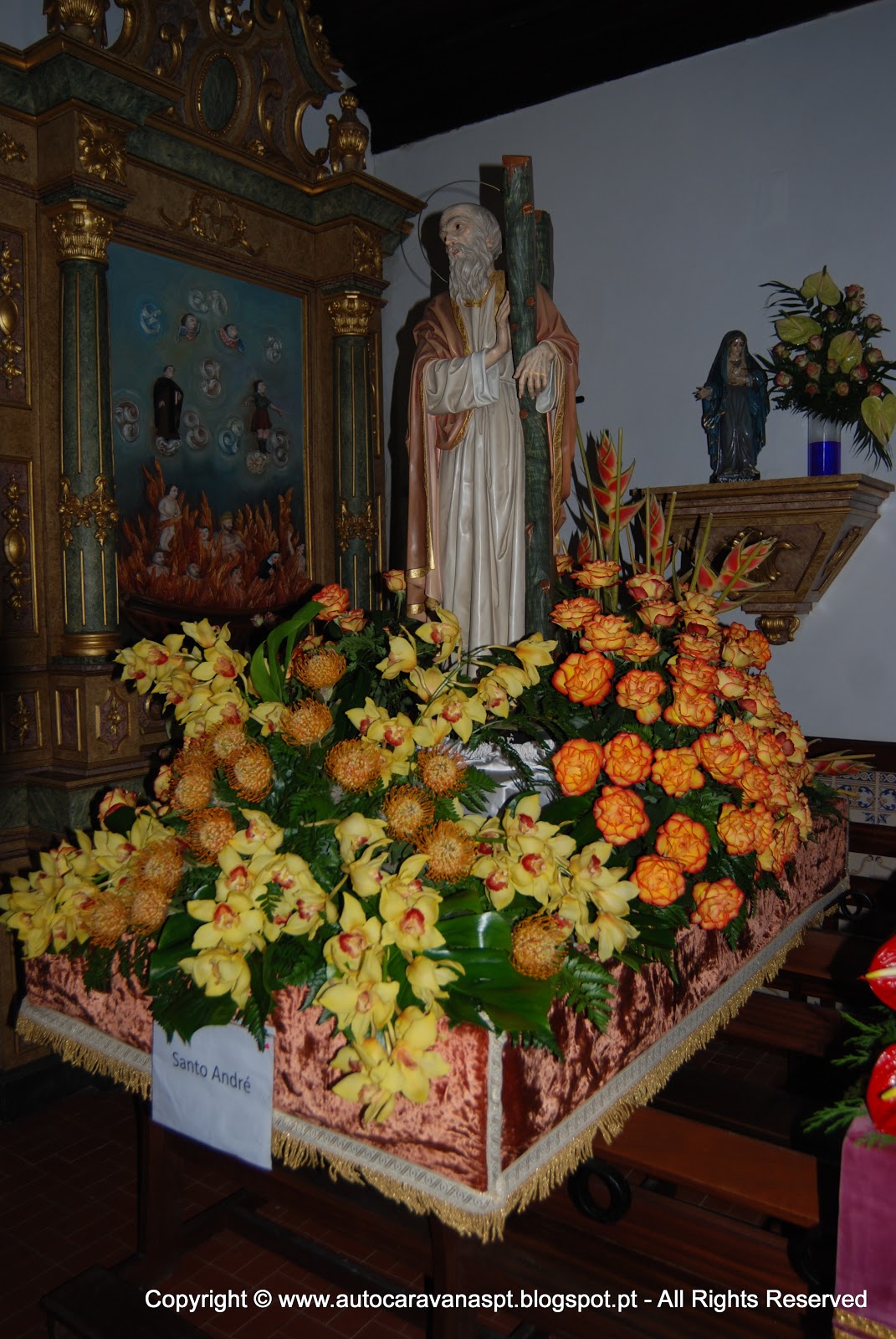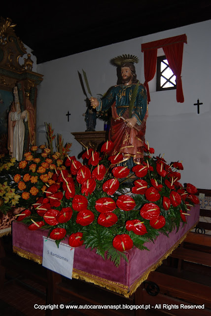 A visita obrigatória à capela que dizem ser do Séc. XVI, onde ainda estão expostos os ''andores'' lindamente decorados com flores naturais que desfilaram no último dia de novembro, dia do ''santo'' que dá o nome à capela.