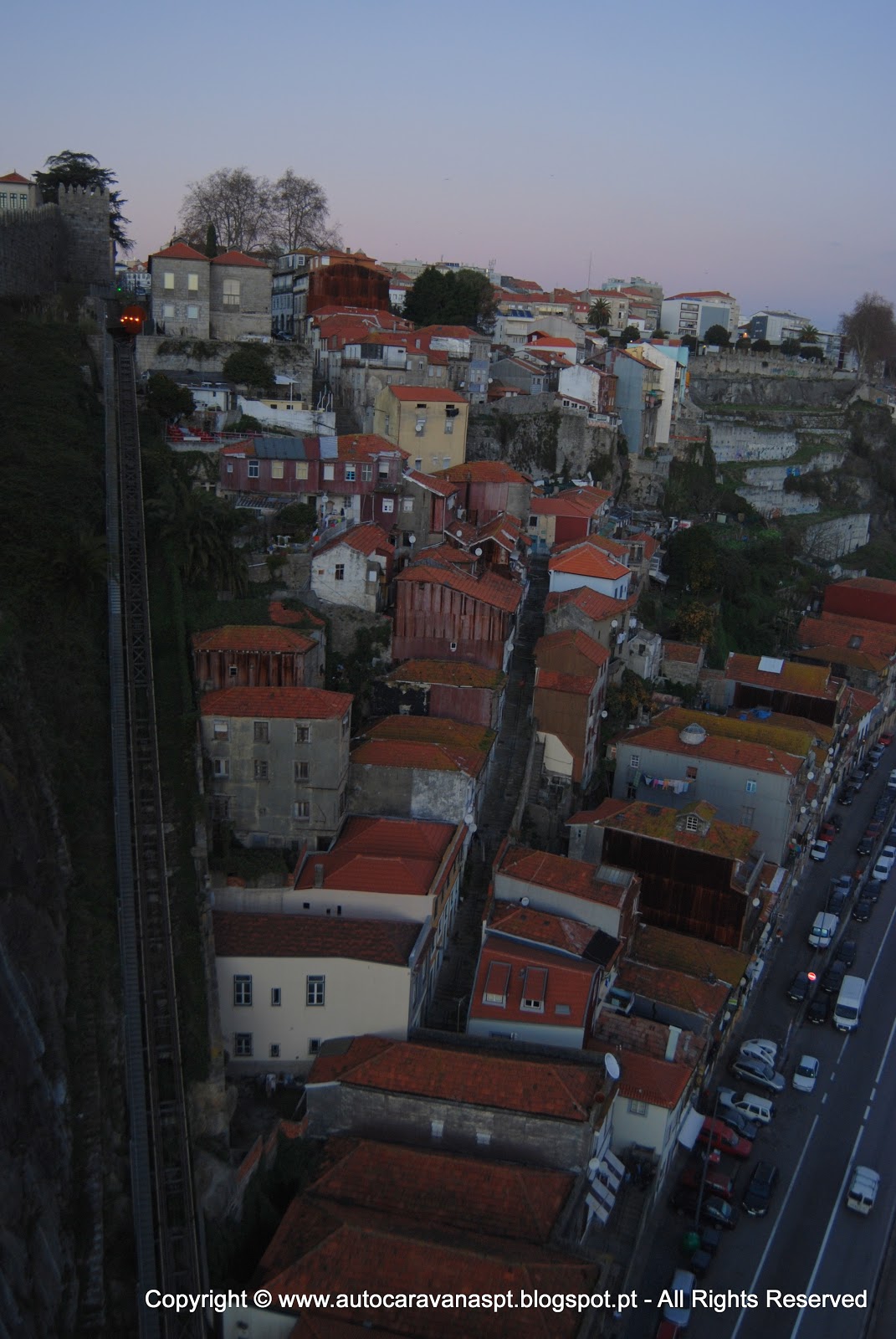 Ensaiamos a subida no teleférico que vai da zona ribeirinha até ao Jardim do Morro (ao pé do tabuleiro superior da ponte D. Luis), mas o seu custo algo exagerado fez com que efetuássemos a subida a pé.