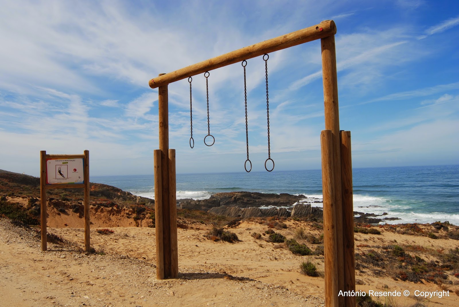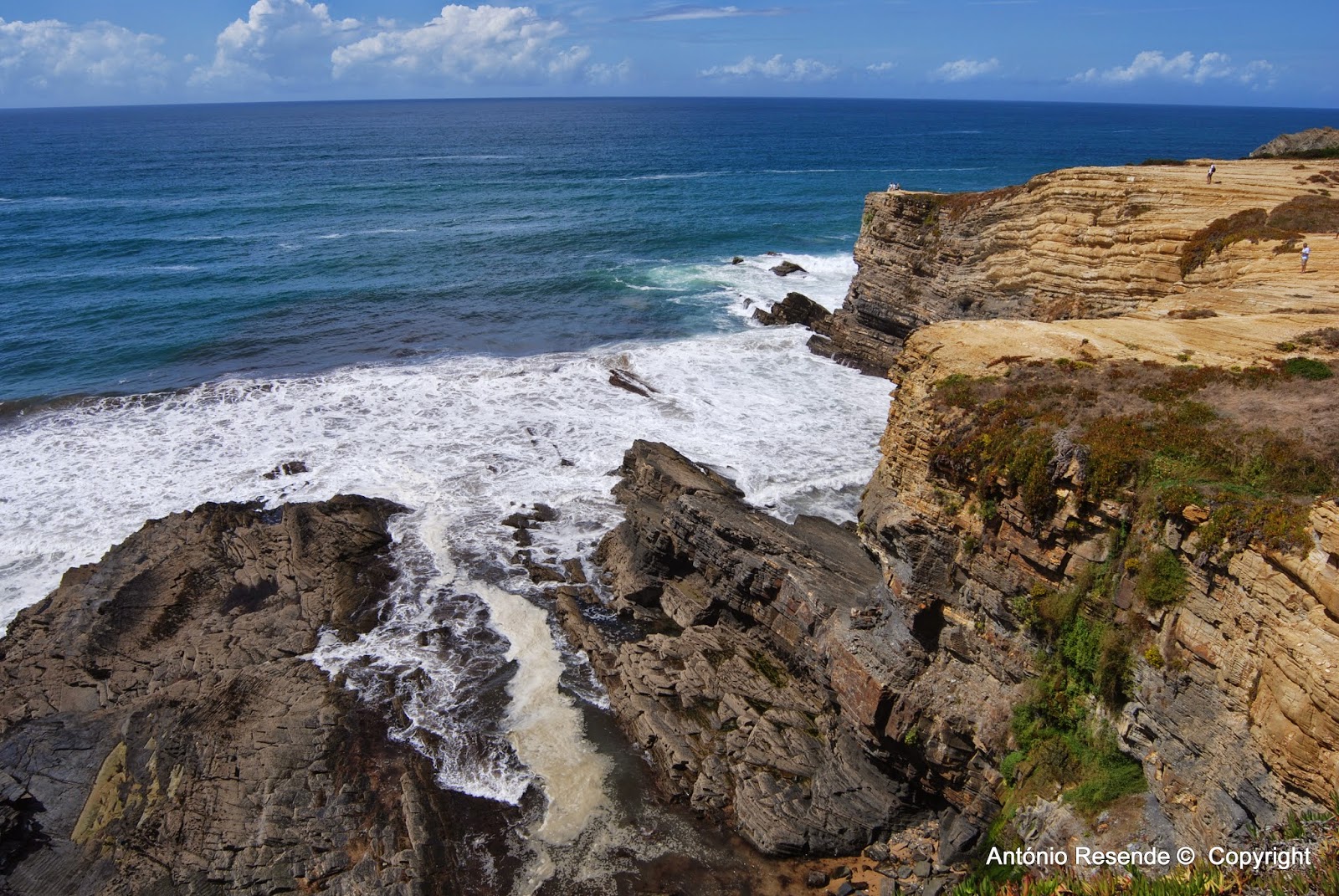 Regressados para almoçar, voltamos a caminhar em direcção a norte num trilho em areia sobranceiro ao mar onde alguns pescadores pescavam do alto das falésias.