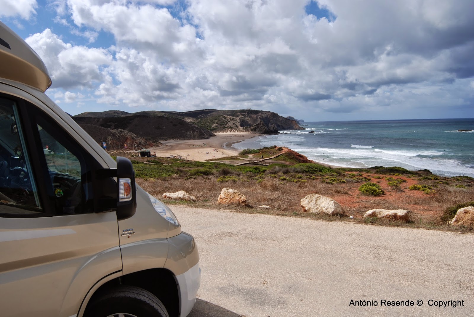 Prosseguimos entretanto pela Carrapateira de onde derivamos para a Praia do Amado, aí sim, as autocaravanas, carrinhas e automóveis seriam às centenas.