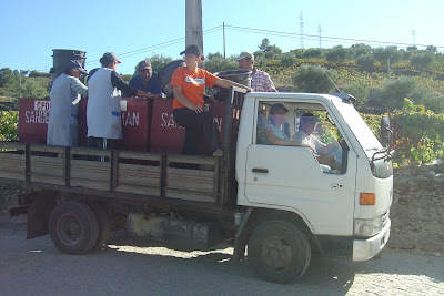 (a Sra Maria... com os seus 84 anitos... está aí para as ''curvas''... a vindimar dá cartas...) (parte da equipe acompanha a uva para outros locais de colheita)