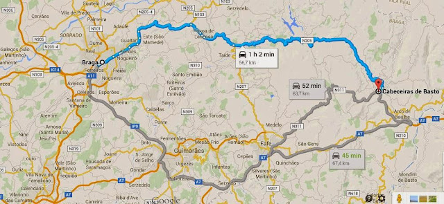Hoje, ficarei na Vila de Cabeceiras de Basto optando pelo sinuoso percurso via Póvoa de Lanhoso mesmo se o 'google' me apresenta 3 alternativas.