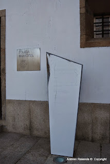 Num deslavado painel ao lado da igreja, li que teria de me encaminhar para a porta ao lado, onde funciona a Polícia Municipal.