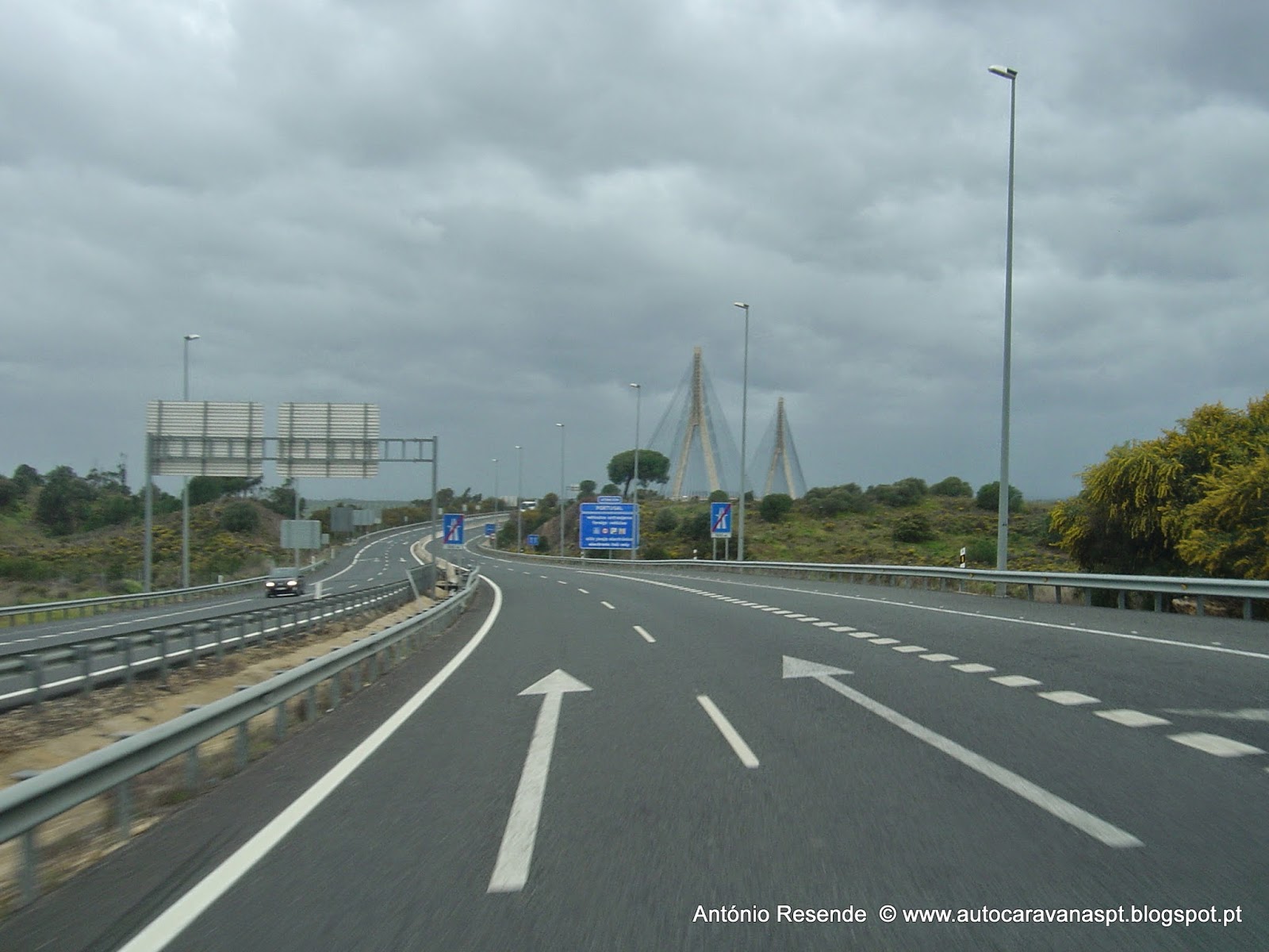 Já próximos de Ayamonte, na 'autovia' as placas indicativas de 'portagem' na entrada em Portugal, dão um ar da sua graça...