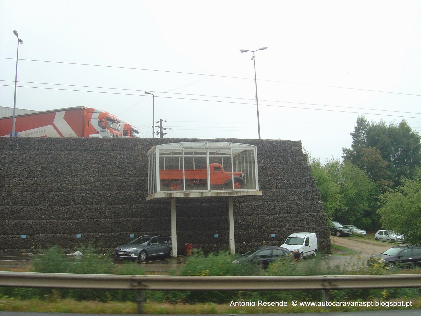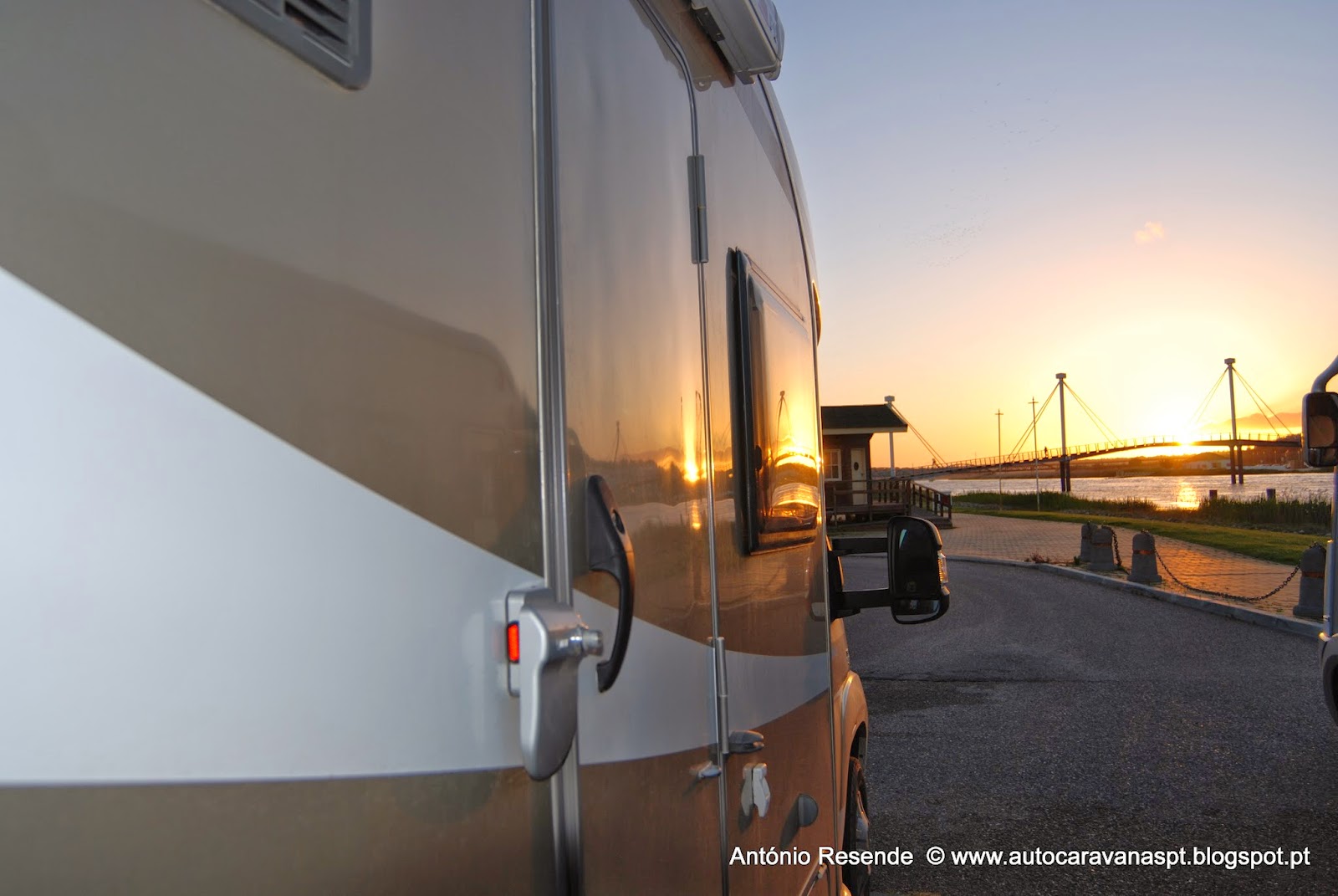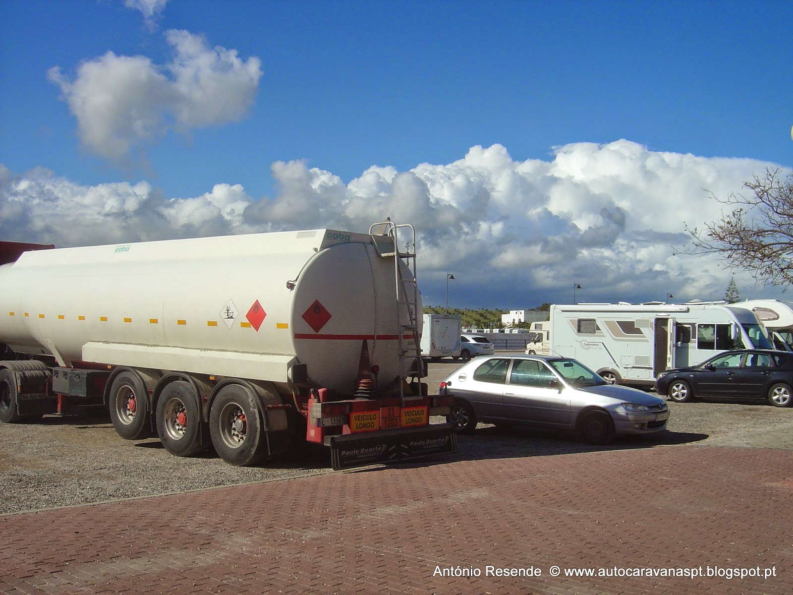 Pelas dez da manhã, no _P_ contíguo à AS, chegou um 'jeep' da GNR que numa folha de comunicação à Câmara identificaram autocaravanista Alemão... o homem ficou 'fulo' pois os guardas assinalaram como eventual infração únicamente o 'degrau' da AC aberto... Em 'off' simpáticamente foram-me dizendo que como ele é Alemão... se não se dirigir à autarquia... a situação terá como fim o arquivo...