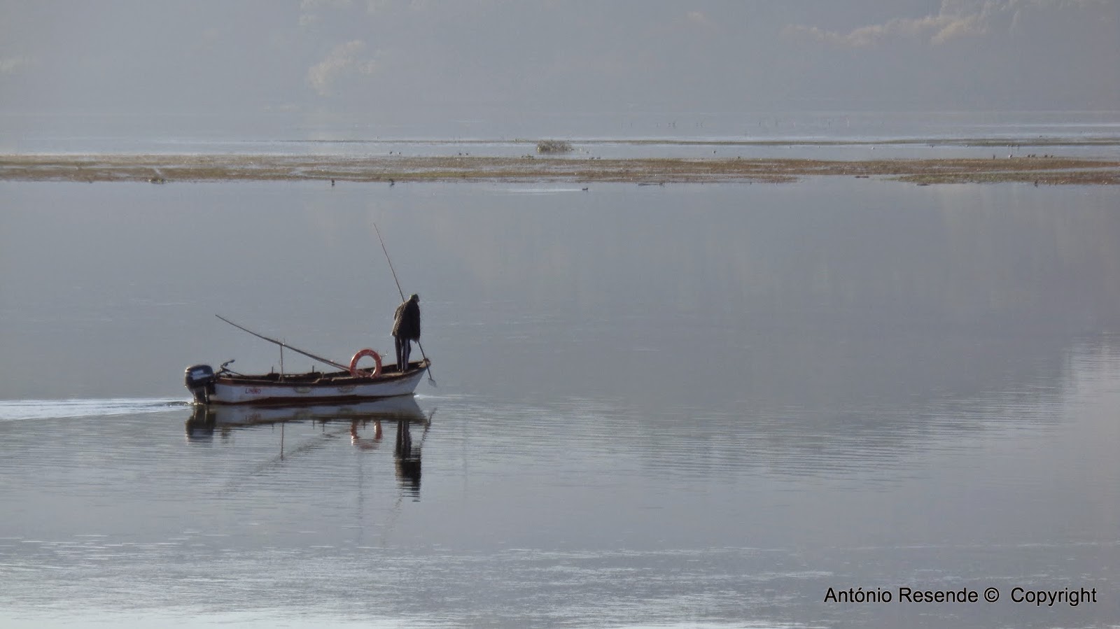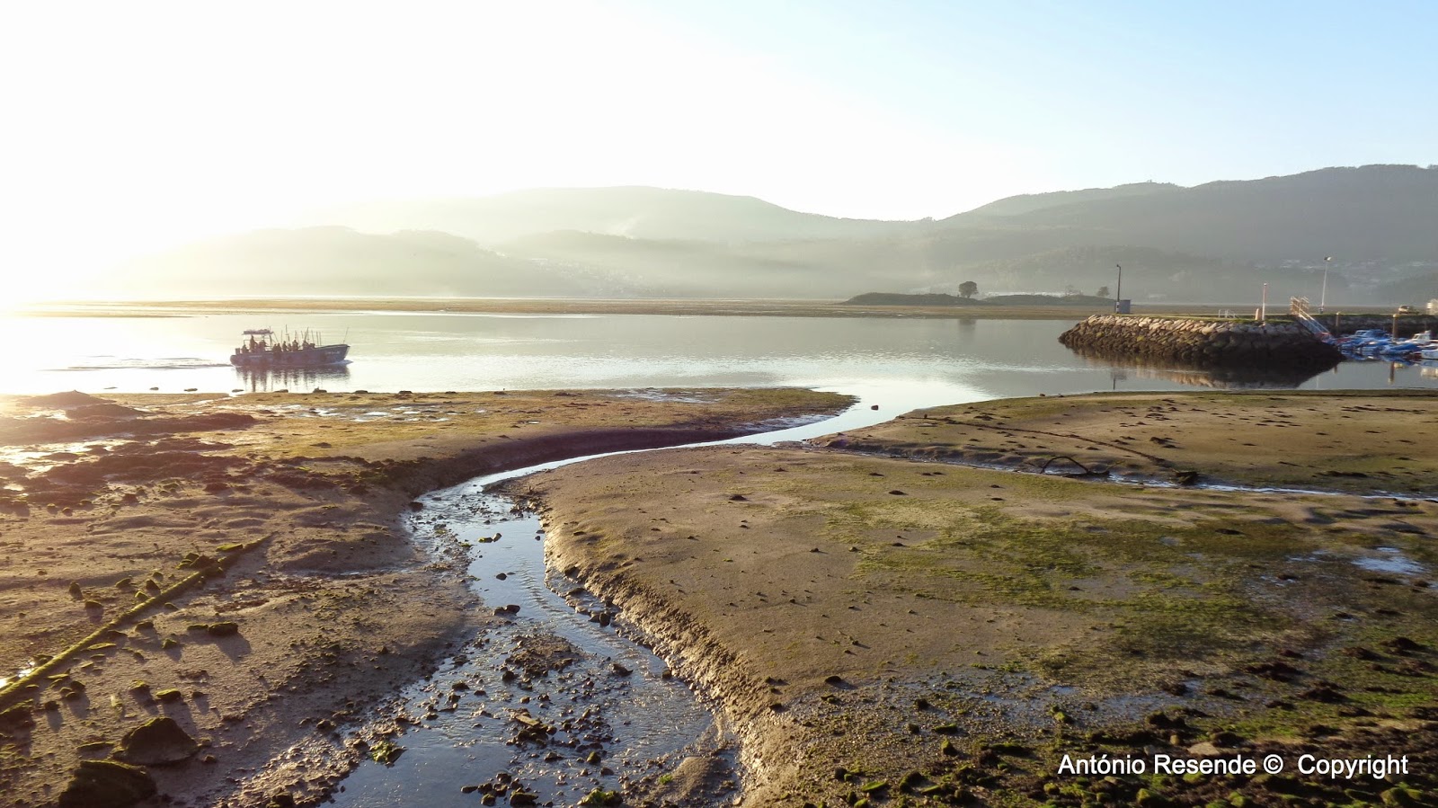 Um barco que leva ao miolo da baía gentes para a apanha dos moluscos