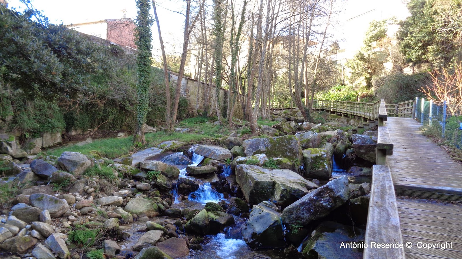 Pela manhã, pequena caminhada pelas margens de pequeno ribeiro que desce a encosta até à baía.