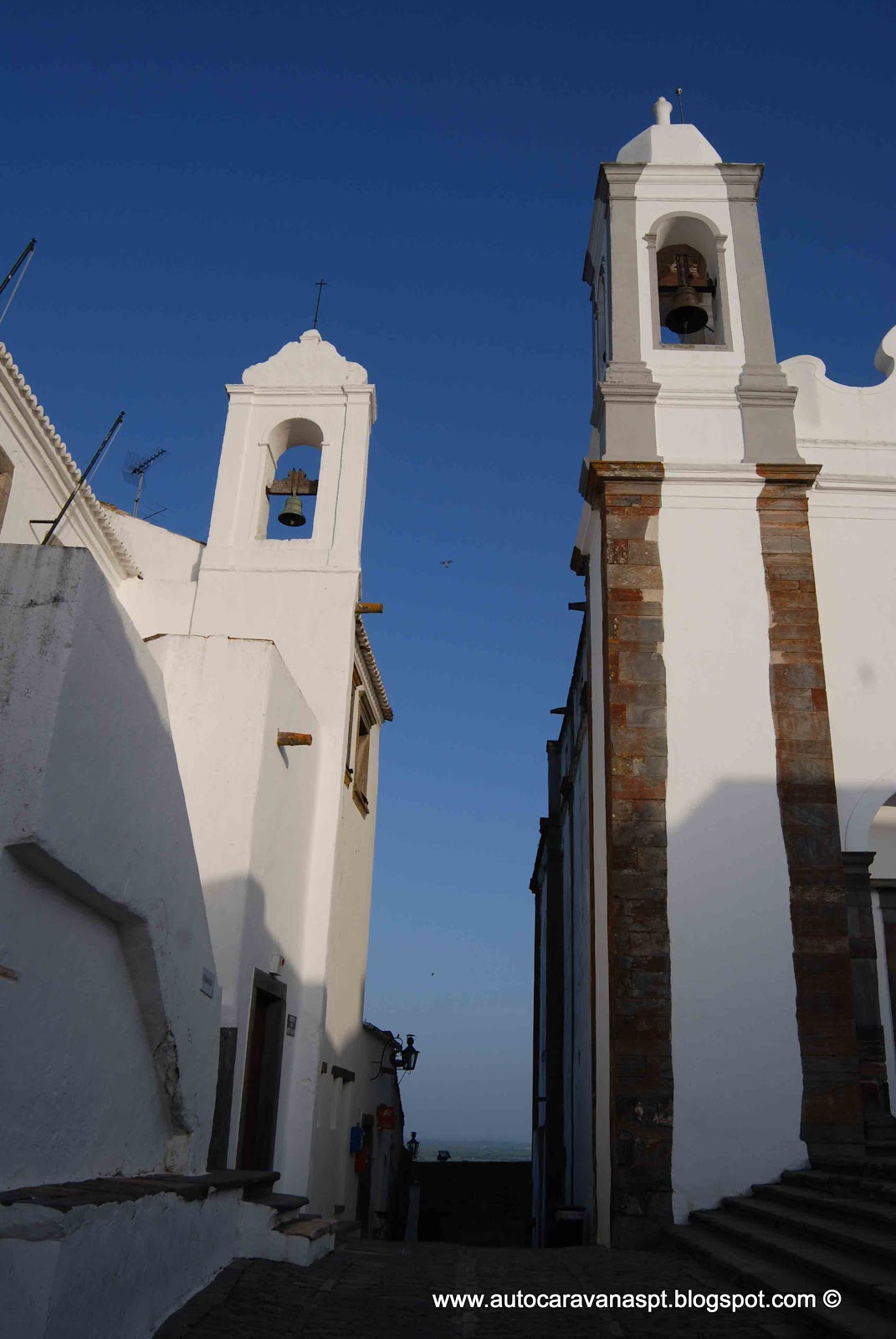 Não era nossa intenção pernoitar mesmo se ainda é possível estacionar no enorme espaço térreo que dista uns 600 mts do Centro Histórico ( GPS N38º33’59.5’’ / W 7º54’30.8’’).
