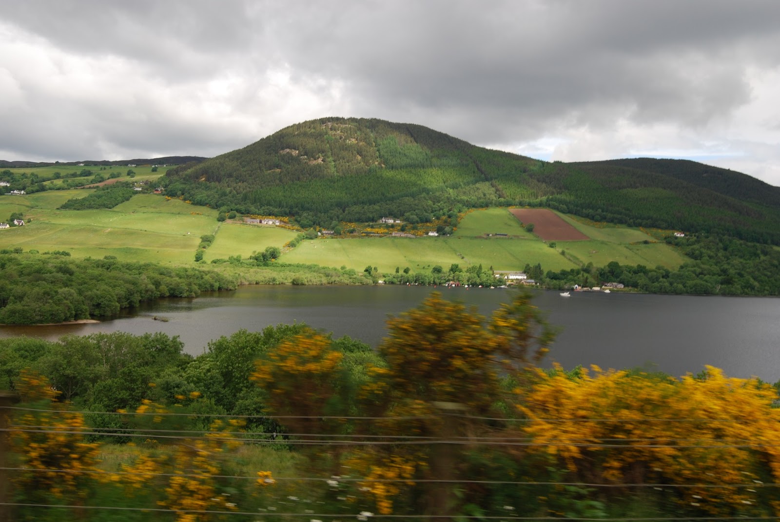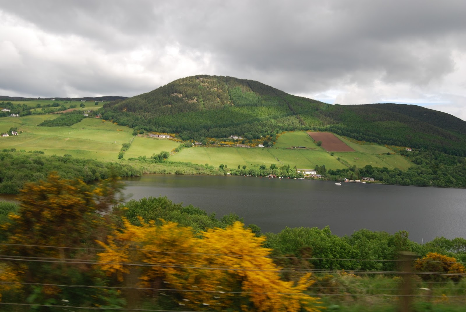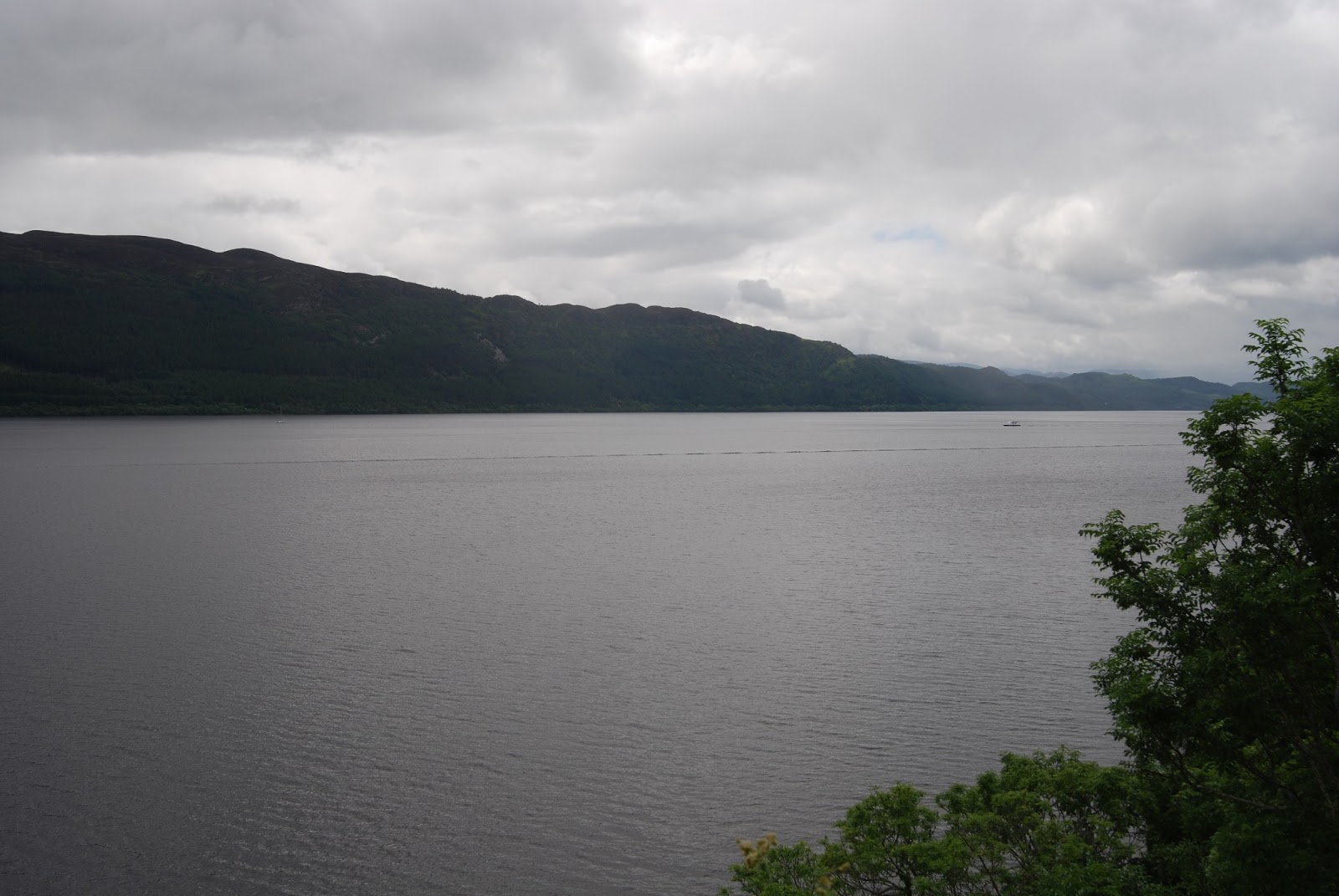 A já conhecida estrada junto ao Lock Ness obriga a atenção redobrada pois basta encostar à faixa central para as quadrículas divisórias incomodarem com a trepidação... e encostando à faixa esquerda, logo após a faixa pintada, uma distração e o despiste ocorrerá pois por vezes as bermas ficam logo ali e bem profundas...