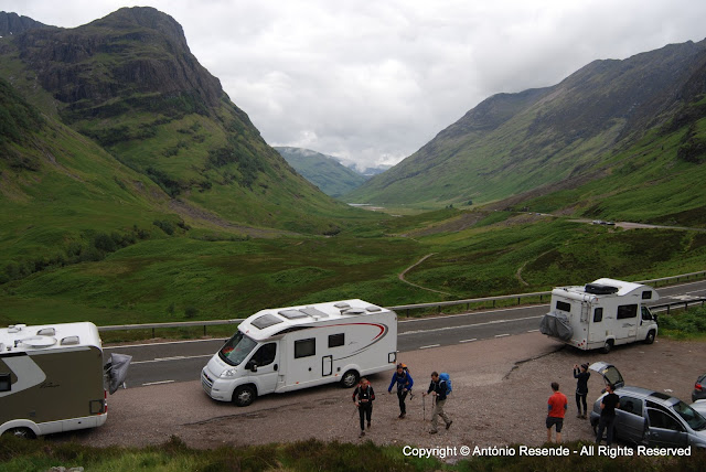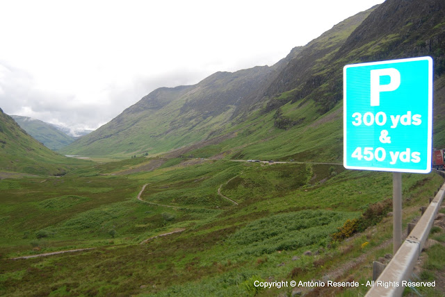 Aquando da saída de Tarbet, tive o primeiro susto de condução... nada a ver com a condução 'pela esquerda' a que me habituei na primeira hora... é que com receio de avançar num cruzamento para dar prioridade a uma viatura, um camião 'TIR' que me precedia, não me bateu na retaguarda 'por um triz'... safa!!!