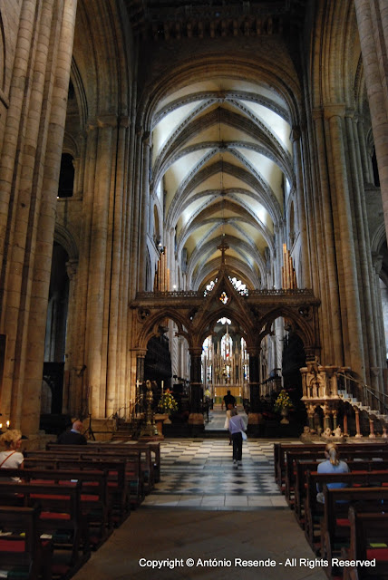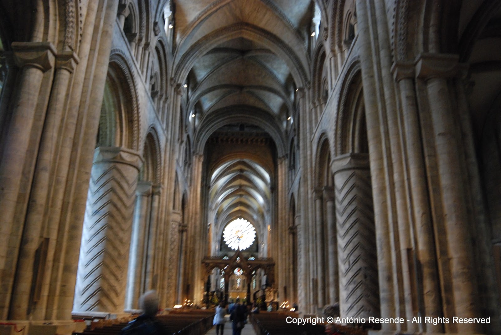 Caminhamos até à bonita cidade pejada de gente e subimos em direcção da Catedral que sendo enorme o era também em termos de beleza. Construida entre 1093 e 1274, é uma espantosa estrutura normanda.