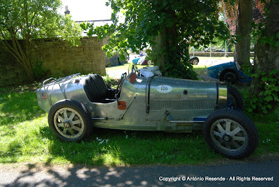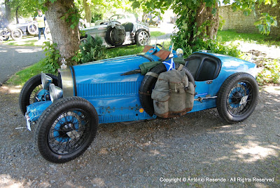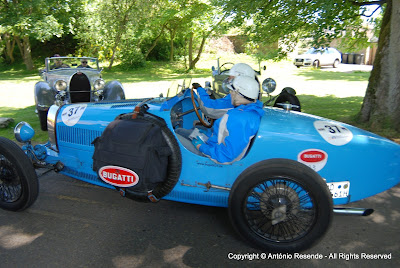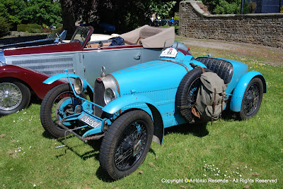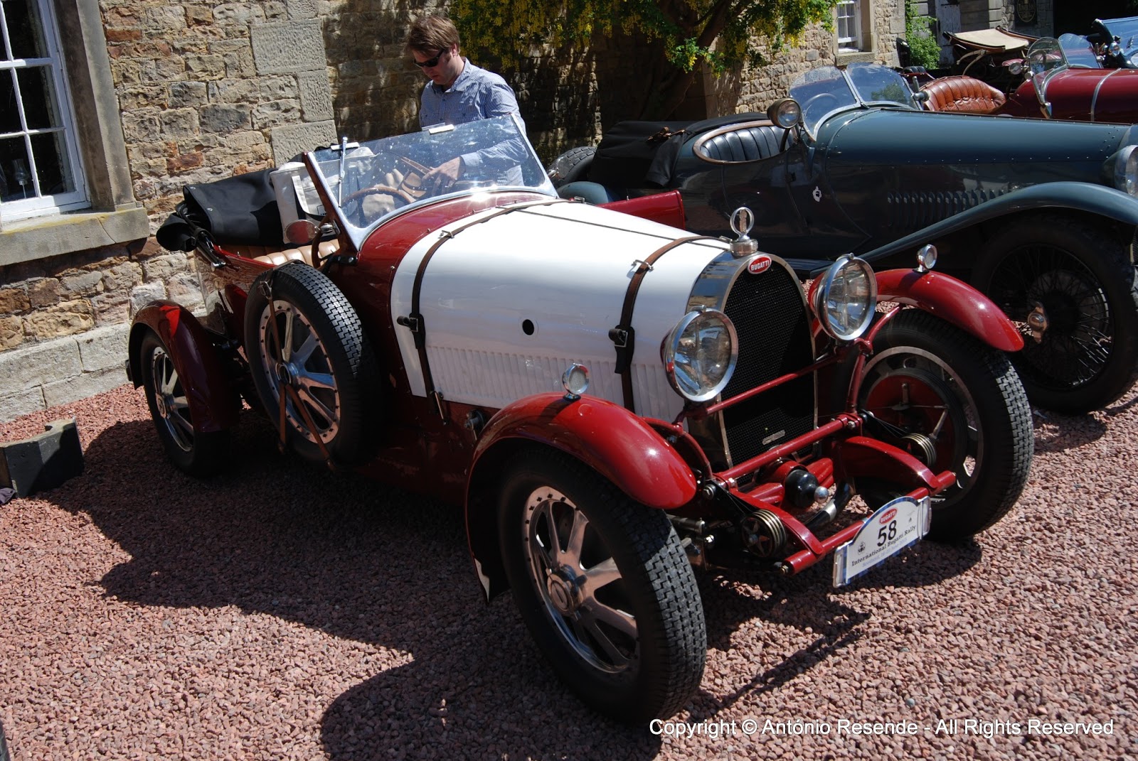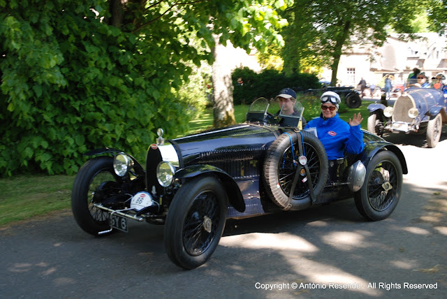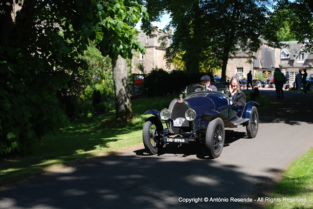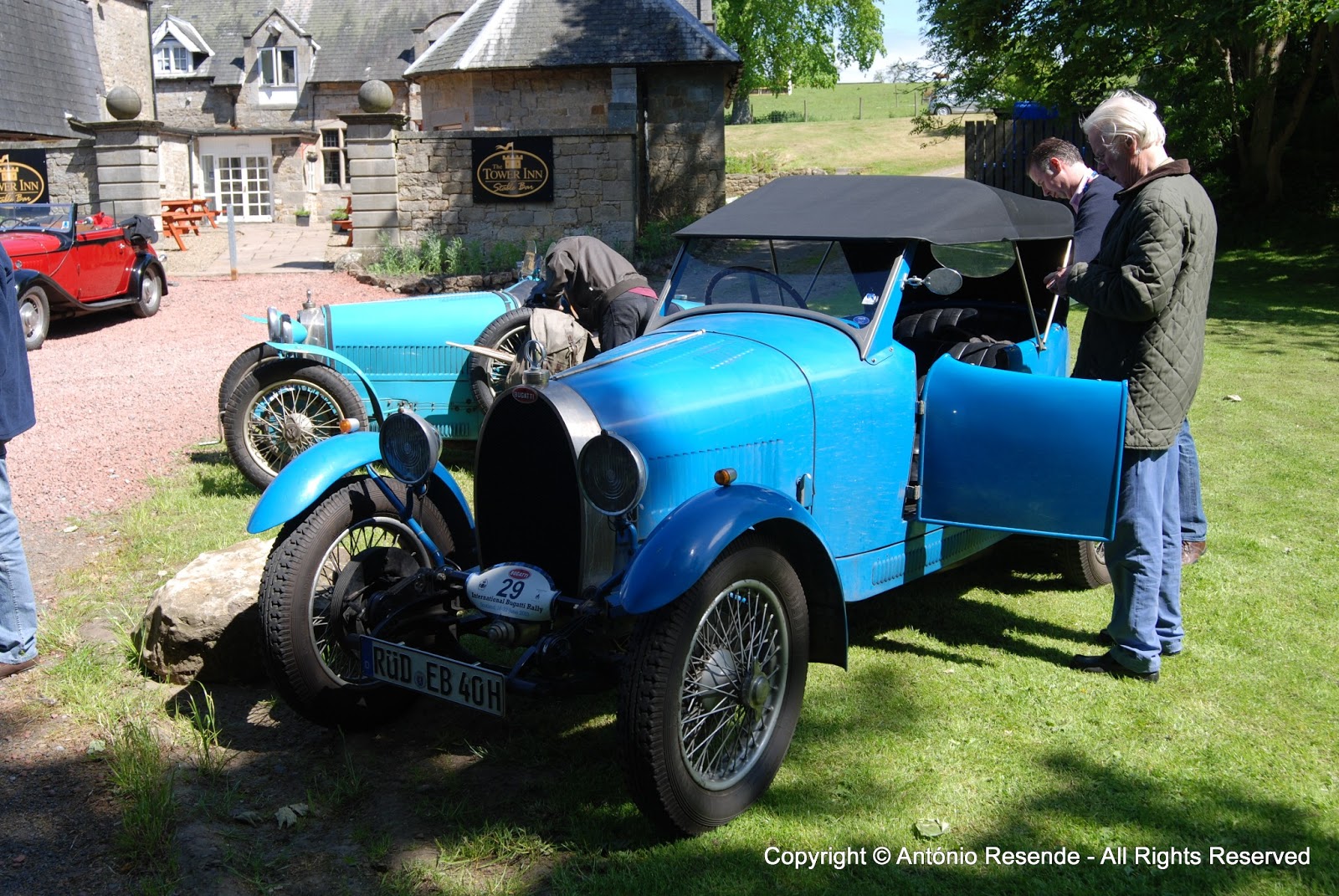 Junto a um Hotel/Castelo haviam chegado e já outros partiam... nada mais nada menos que mais de meia centena de ''Bugattis'' que faziam um circuito à Escócia.