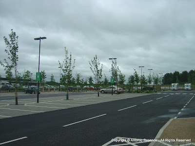 Após atravessar a cidade, reparamos num recente P & R com supermercado anexo e com ‘bus’ à porta. Os preços de estacionamento junto ao ‘super’, eram até £ 4,00 / 9 horas, mas mais adiante existia outro espaço para quem se desloca para a cidade onde se paga £ 1,00/9 horas.
