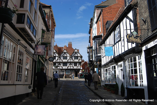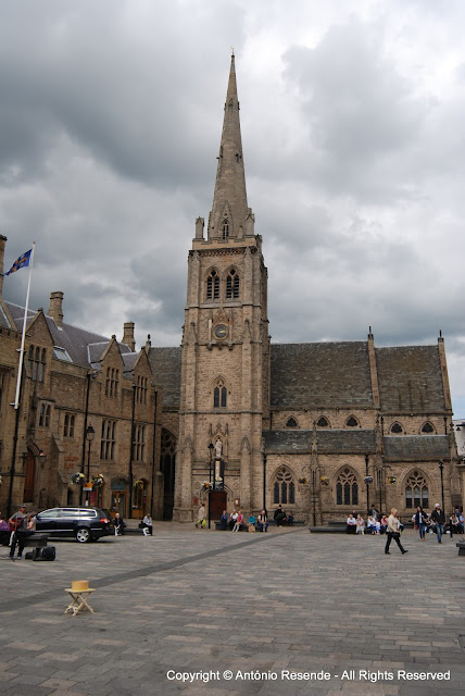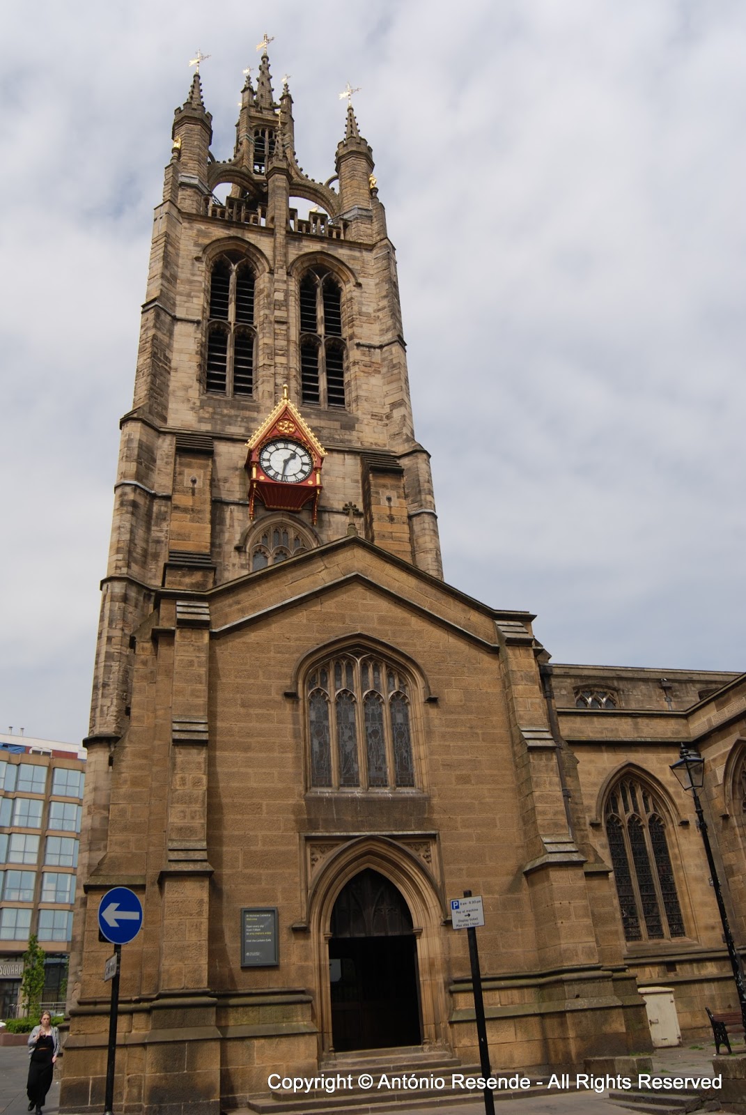 Numa cidade de média dimensão, não é fácil fazer-se uma visita razoável mas, ainda descemos até à St Nicholas Cathedral que não sendo das maiores catedrais de Inglaterra, tem no seu interior vestígios da igreja normanda original, do séc XI, sobre a qual foi fundada a presente estrutura dos séc. XIV-XV. Destaque para a ‘torre da clarabóia’ – meia torre, meia flecha – que é uma de apenas quatro na Inglaterra. Entramos e apreciamos toda a sua grandiosidade e beleza.