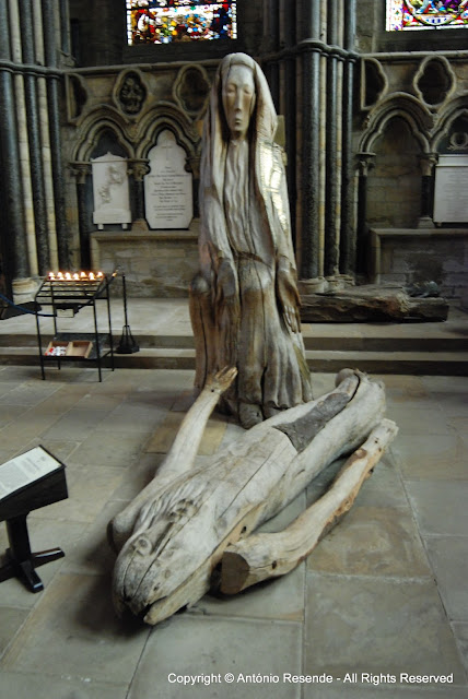 Por detrás do altar-mor, fui atraído por uma obra de arte que vi ser de ‘gente conhecida’… pois e era mesmo, de Paula Rego!