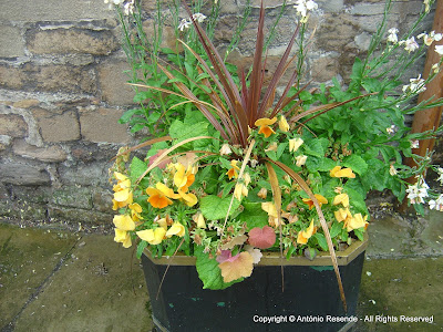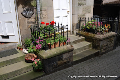 E lá estava um cavalheiro devidamente vestido como manda a tradição a tocar gaita de foles.