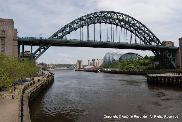 A caminho do rio, lá estavam as pontes sendo que a Tyne Bridge, inaugurada em 1928, arco de aço com dois eixos e era o mais longo do seu género em Inglaterra, com um vão de 162 mts e se tornou um dos símbolos da cidade.