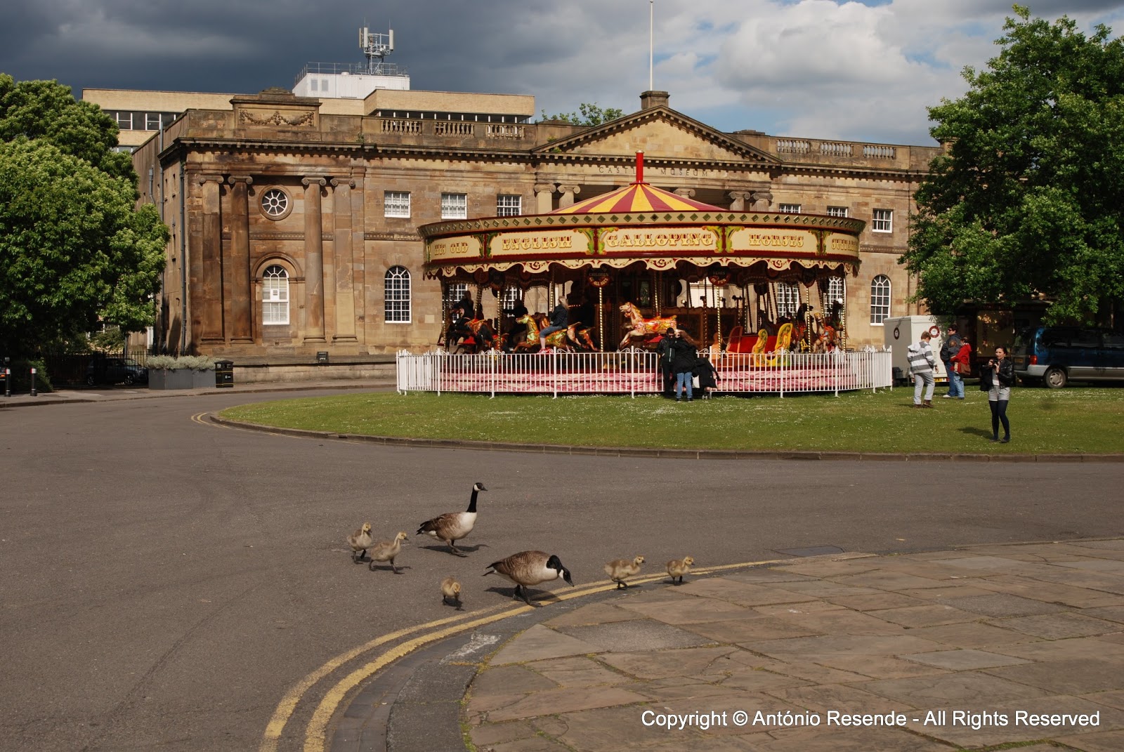 A uns quatro km de York, o trânsito fez-se no ‘pára arranca’ ou não fora sábado e os automóveis invadiam a cidade onde o estacionamento tem inúmeras alternativas ainda que pagas.