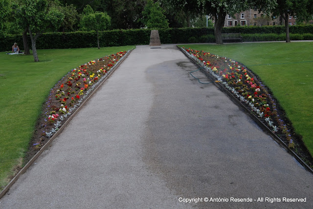 Chegados à cidade, o _P_ indicado no Gps situava-se na parte alta da cidade, próximo da Catedral. Dentro de gradeamento de complexo hoteleiro. Até nos agradou, o que nos demoveu a ficar foi o facto de termos de alimentar a máquina apenas a moedas… e… mesmo sendo um preço elevado, atendendo à localização, ainda exitamos (£ 7,00/dia + £ 2,50 até 8h. manhã), pensando bem, a opção foi mais acertada… voltar atrás e optar pelo Camping que seria a uns 6 km da cidade num Parque Natural.