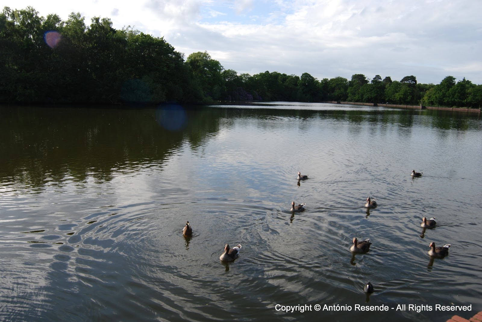 No Parque ainda esboçamos uma caminhada a pé, junto aos inúmeros lagos repletos de patos e cisnes. Pelo caminho imensas aves e esquilos.