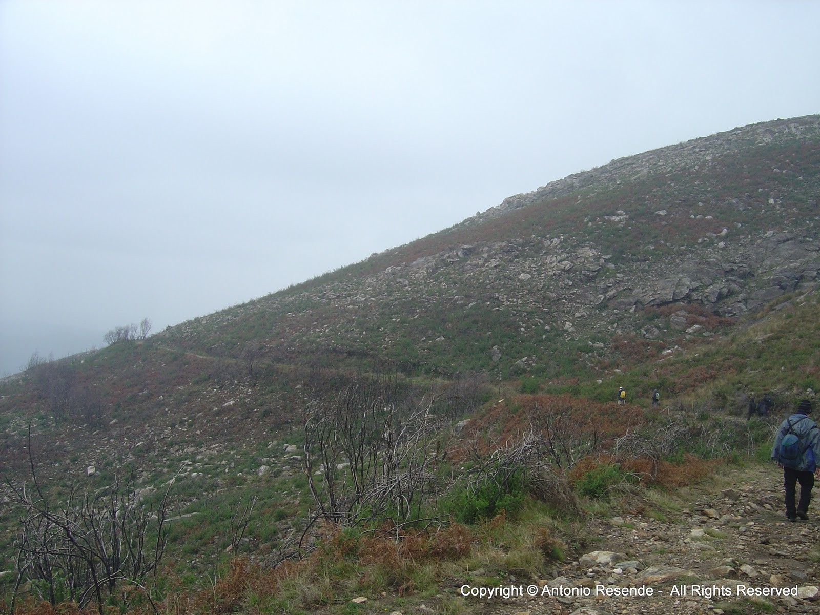 Passado o cume, a descida ainda com nevoeiro.