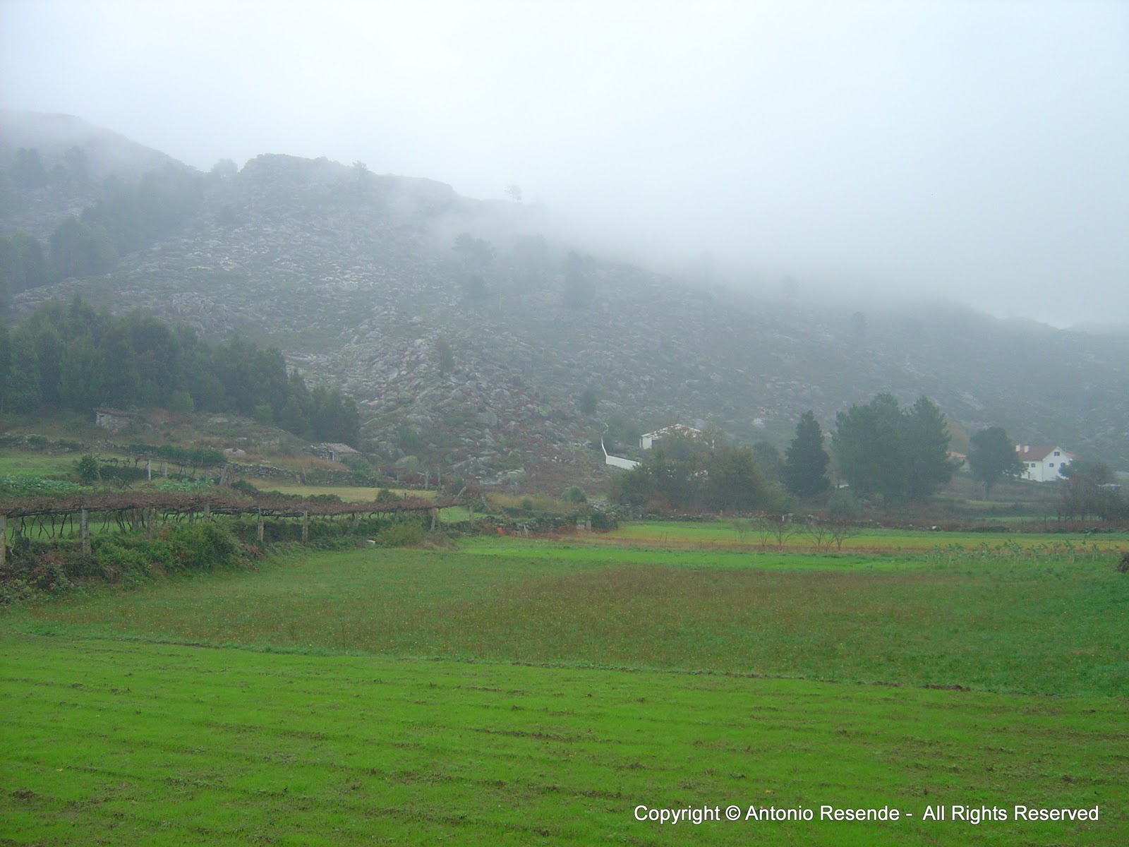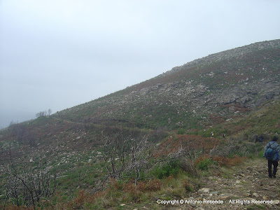 Lá no cimo, surgiu como já vem sendo habitual, uma forte neblina, um nevoeiro daqueles que respinga uma chuva miúda puxada a vento.