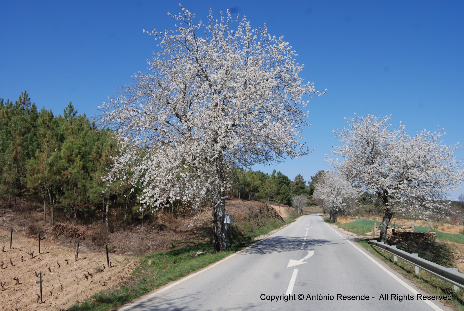 Salpicos de flores amarelas que predominam nos campos, sobressai em toda a corda do Sabor, bordejando caminhos e ajardinando serras, em branco o esplendor das enormes cerejeiras.