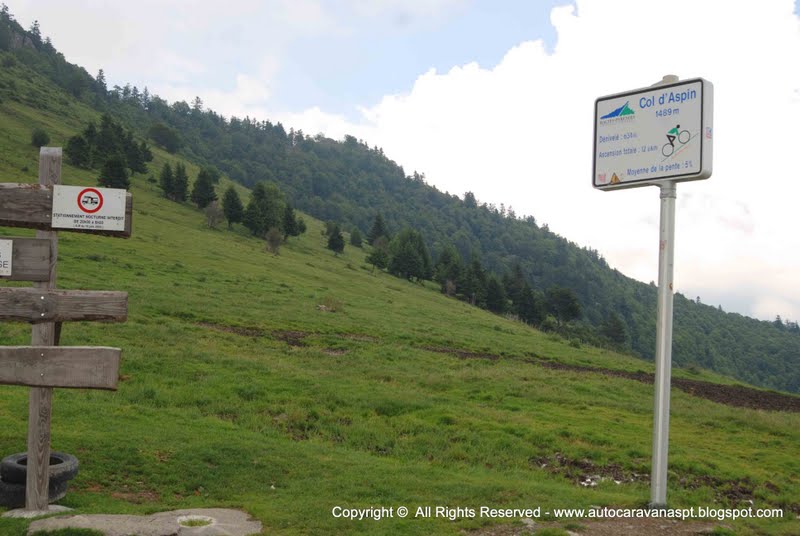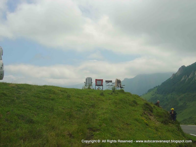 A sugestão do meu ‘’parceiro’’ de viagem era de ficarmos para lá do ‘’Col du Soulor’’, próximo do ‘’Cold’Aubisque’’ ( 1.709 mts), mas… ao chegar ao cimo do primeiro (1.450 mts) os ‘’Gendarmes’’ dizem-me já não ser possível passar… muitas desculpas… je suis desollé…. Ok… ok… pás de probléme… e como ia estudando os pontos de passagem, optei por escolher o que mais gostei por poder em caso de ‘’temporal’’ visionar comodamente da AC… estava apenas a uns 100 mts do topo.