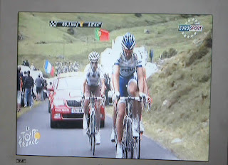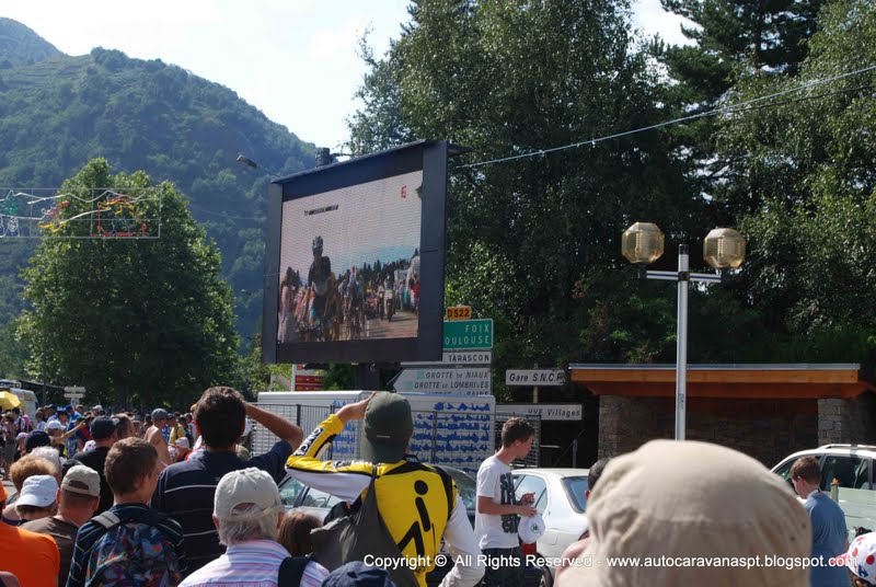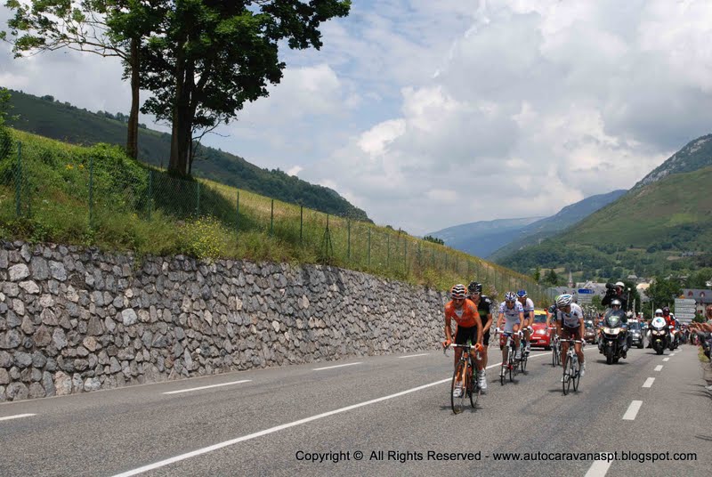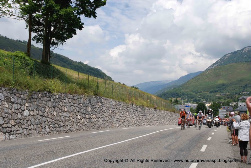 Recebo telefonema do M Vitorino a dizer que estava a passar lá no fundo do Col D’Aspin… pois… safou-se… é que após fazer a descida, fui encontrar o ‘’nó’’em SAINT.MARIE DE CAMPAN onde se cruzavam as viaturas que desciam do final da etape… levei 3 horas… é verdade 3!!! De pára-arranca… mais pára que arranca!