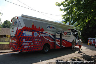 Mais uma olhadela aos espetaculares autocarros que dispõem de gerador próprio e até alojam 2 máquinas de lavar e secar roupa!!!