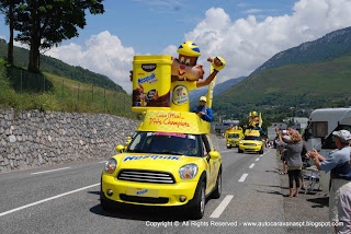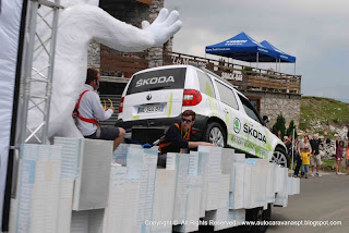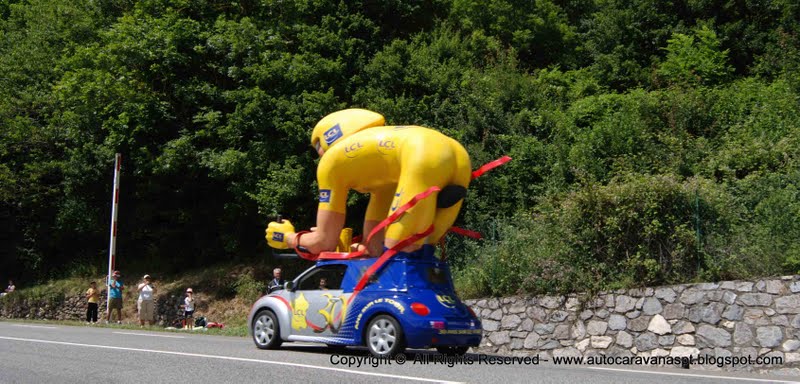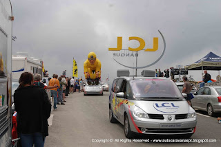 A polícia integra a ''caravana'' do ''Tour'' com uma 6 viaturas vomitando música ''pop'' e atirando material publicitário... autocolantes, porta-chaves... etc... e os agentes vestem de amarelo!!!