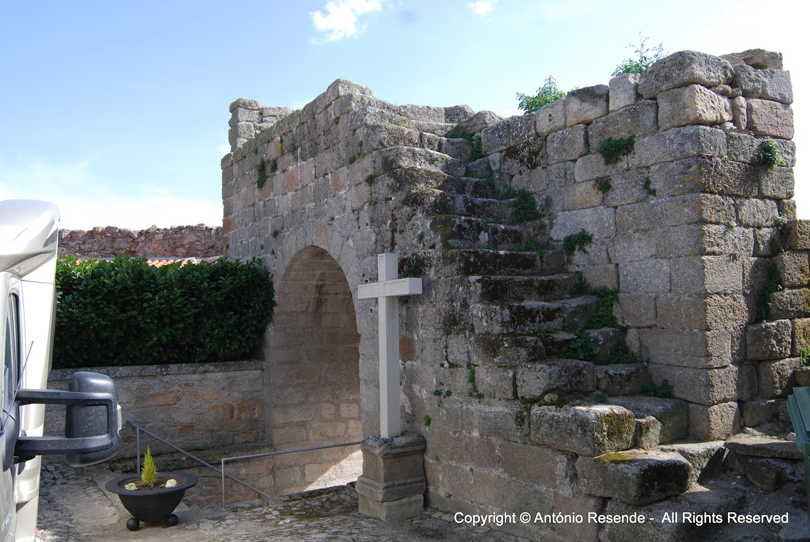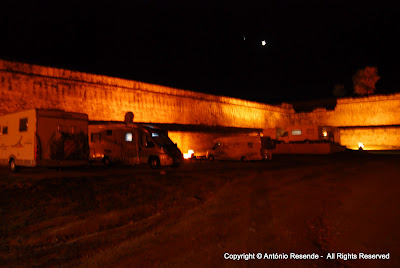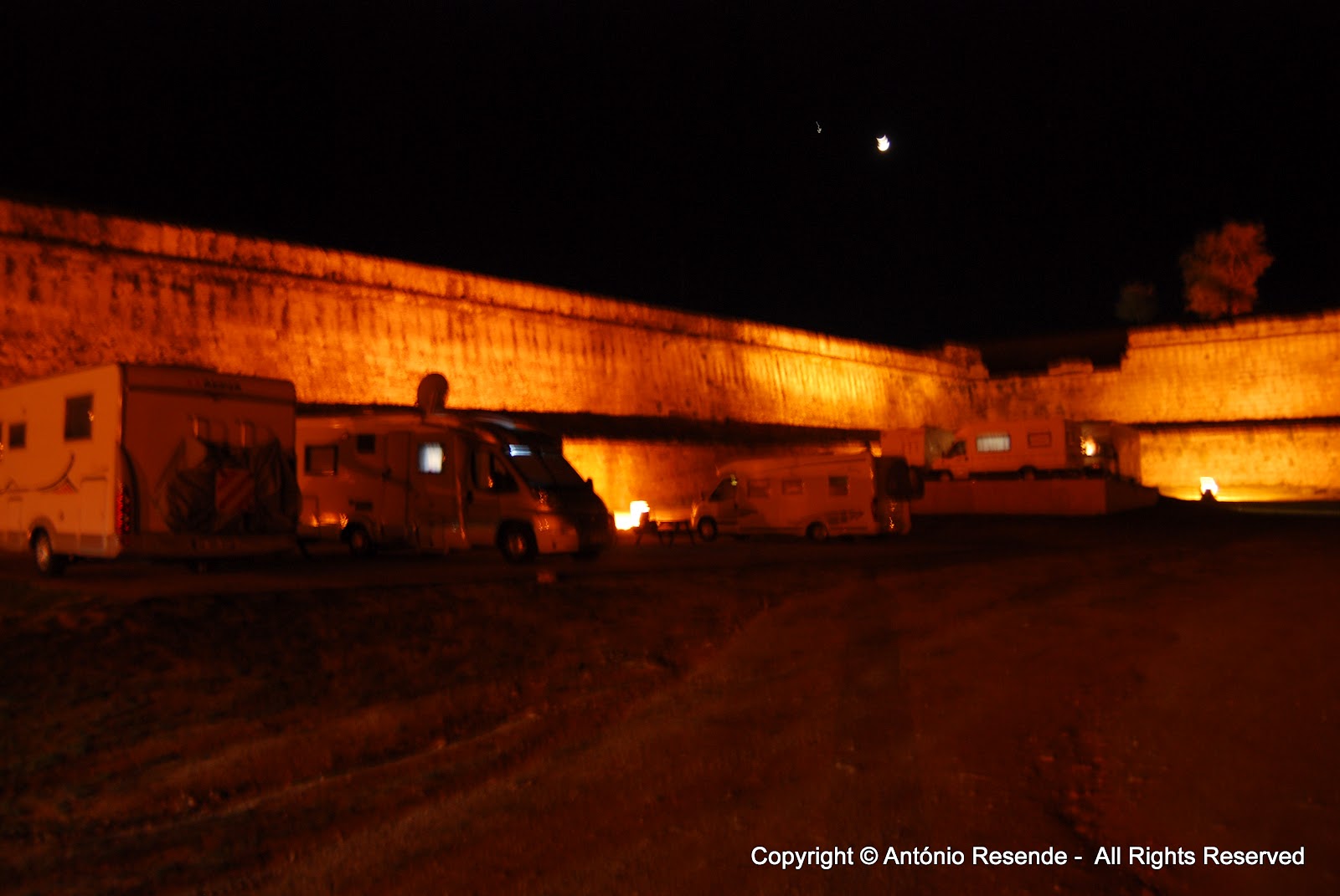 Decidido voltar a Almeida pois na visita matinal descobrimos que há uns 5 anos abriram uma entrada larga para permitir entrar na Vila fortificada viaturas mais corpulentas, e ‘’entre muros’’ construíram uns magníficos sanitários com área de estacionamento, local para descarga de ‘’cassetes de AC’’ e duas tomadas de eletricidade grátis. A descarga de águas cinzentas faz-se numa tampa de saneamento que dispõe de ‘’asa’’ para a sua abertura (o único aspeto negativo).