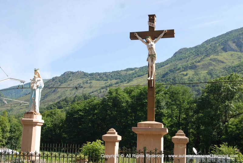 O nosso local de pernoita estava a 32,5 Km (de descida) até Lourdes e já estariam percorridos 120 Km com a passagem do Col d’Aubisque a 1.709 mts e este onde nos encontramos a 1.474 mts e a Meta a 380 mts.