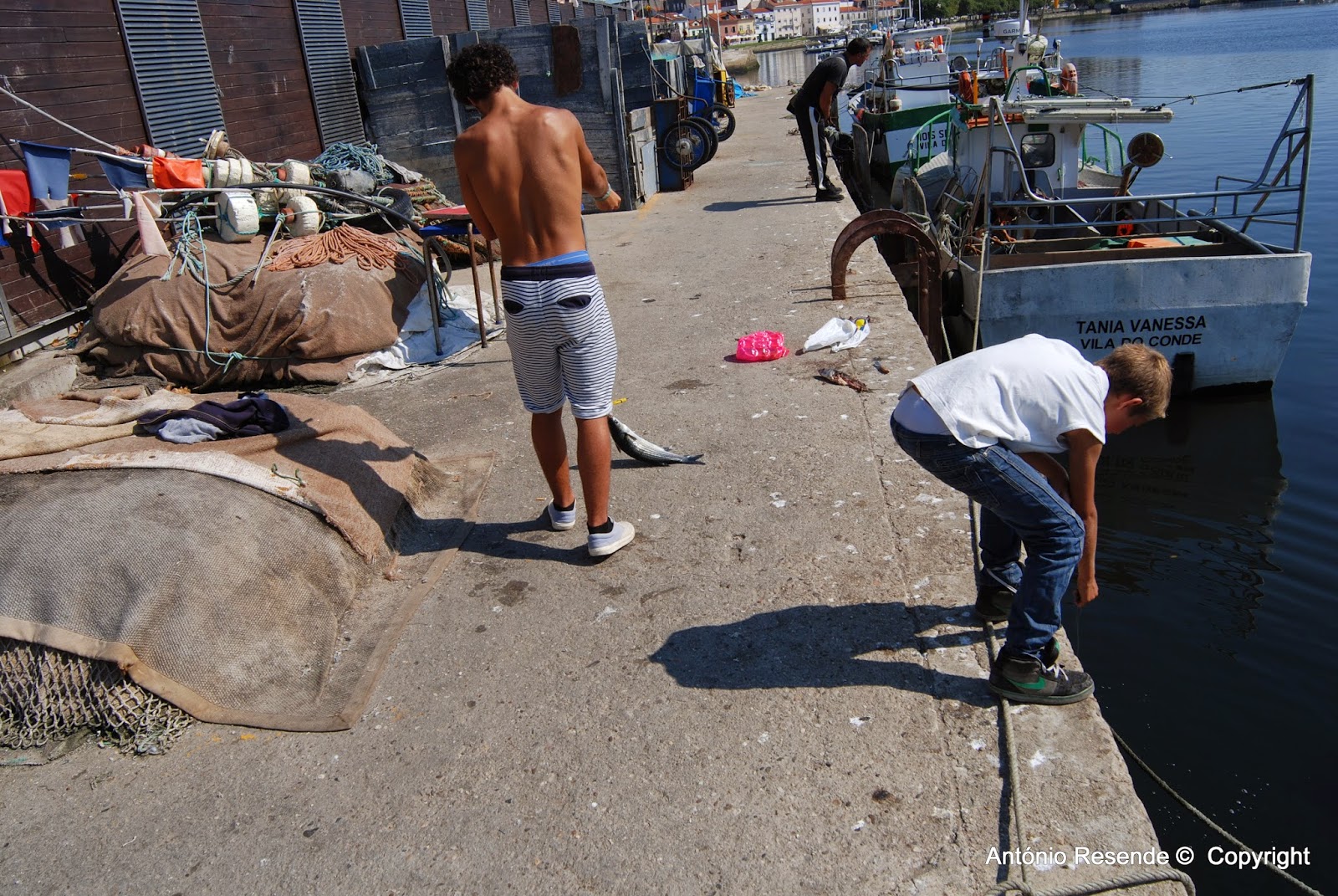 ... mesmo se o local é poluido de sobra, os 'putos' pescam com linha e anzol enormes taínhas que retiram a cada minuto e num ápice enchem duas sacas de supermercado...