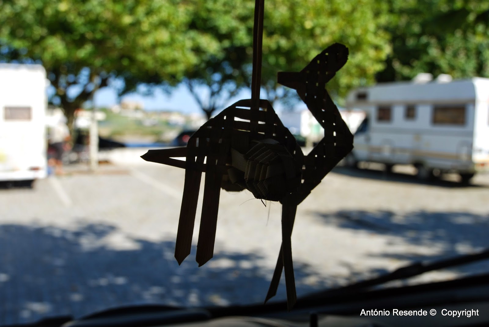 Aquele que trago comigo no retrovisor da autocaravana, 'comprei-o' num local recôndito de Marrocos quando parei num miradouro deserto e me salta por detrás do baixo muro de proteção um 'puto' com vários 'camêlos' de folha verde entrelaçada... para vender!... já lá vão uns 8 anos.