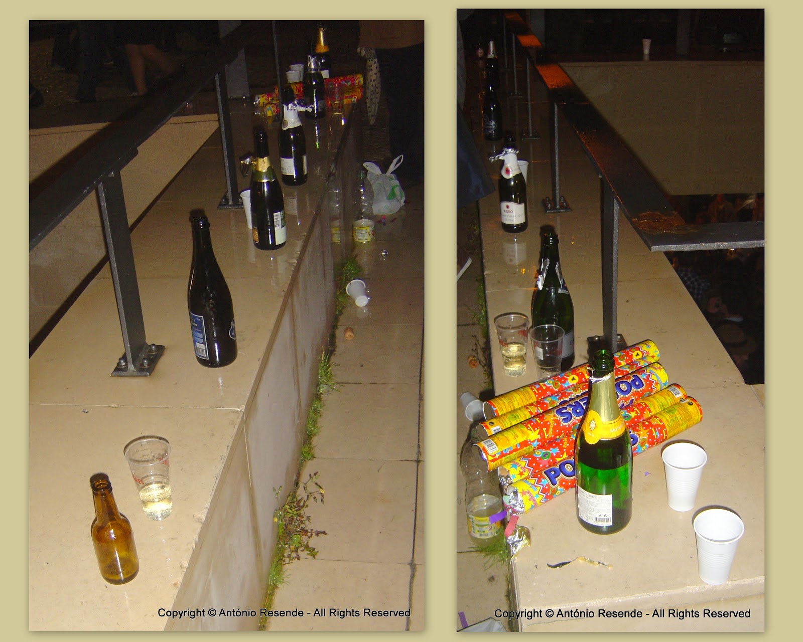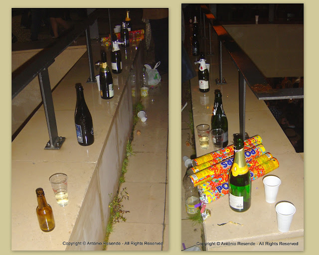 E minutos volvidos... ''o pessoal'' deixou nos muros e muretes os copos, garrafas e cápsulas de foguetes...